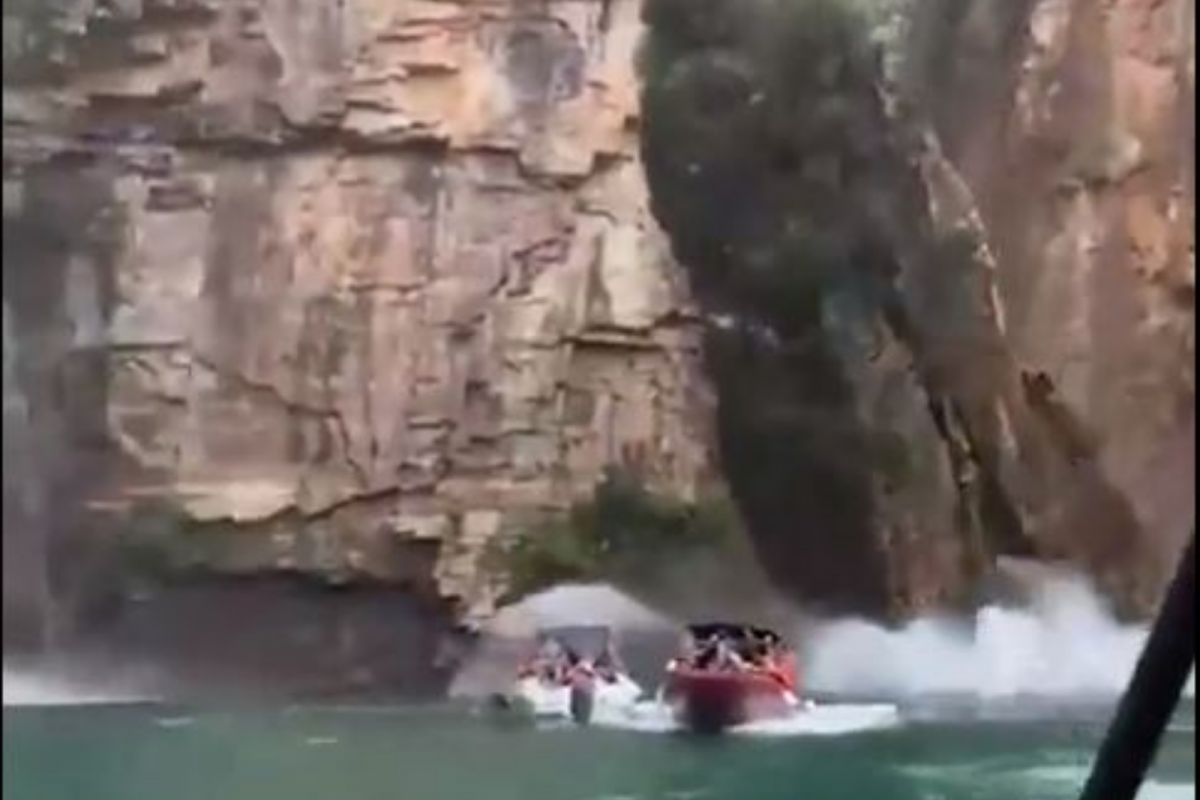 Caught on video. 19 hours ago10 die when Brazil cliff wall collapses on boats in tragedy caught on video Read full article This handout picture released by Minas Gerais Fire Department in Brazil shows firefighters during a rescue operation after a wall of rock broke from a cliff falling onto several tourist boats on Jan. The incident took place at Lake Furnas a popular tourist spot in the Brazilian state Minas Gerais.
